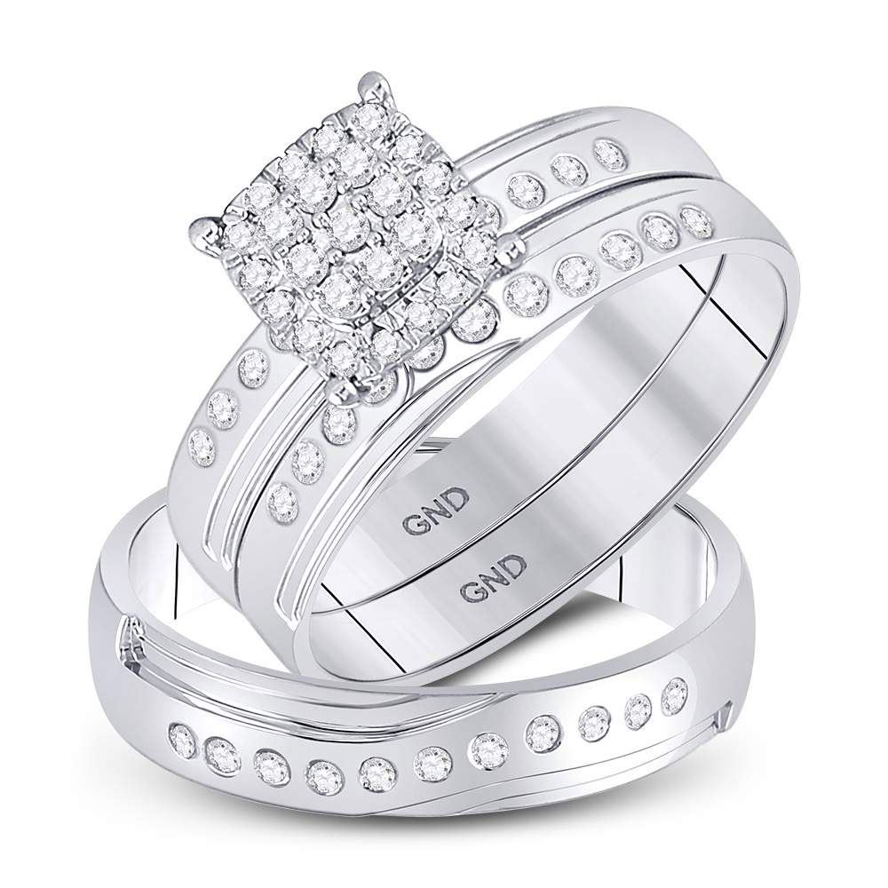 REF-71X8Y - SKU: GD113835 ---- His & Hers Diamond Cluster Matching Bridal Wedding Ring Band Set 1/3 Cttw 14kt White Gold