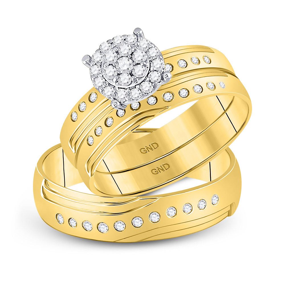 REF-71X8Y - SKU: GD113890 ---- His & Hers Diamond Cluster Matching Bridal Wedding Ring Band Set 1/3 Cttw 14kt Yellow Gold