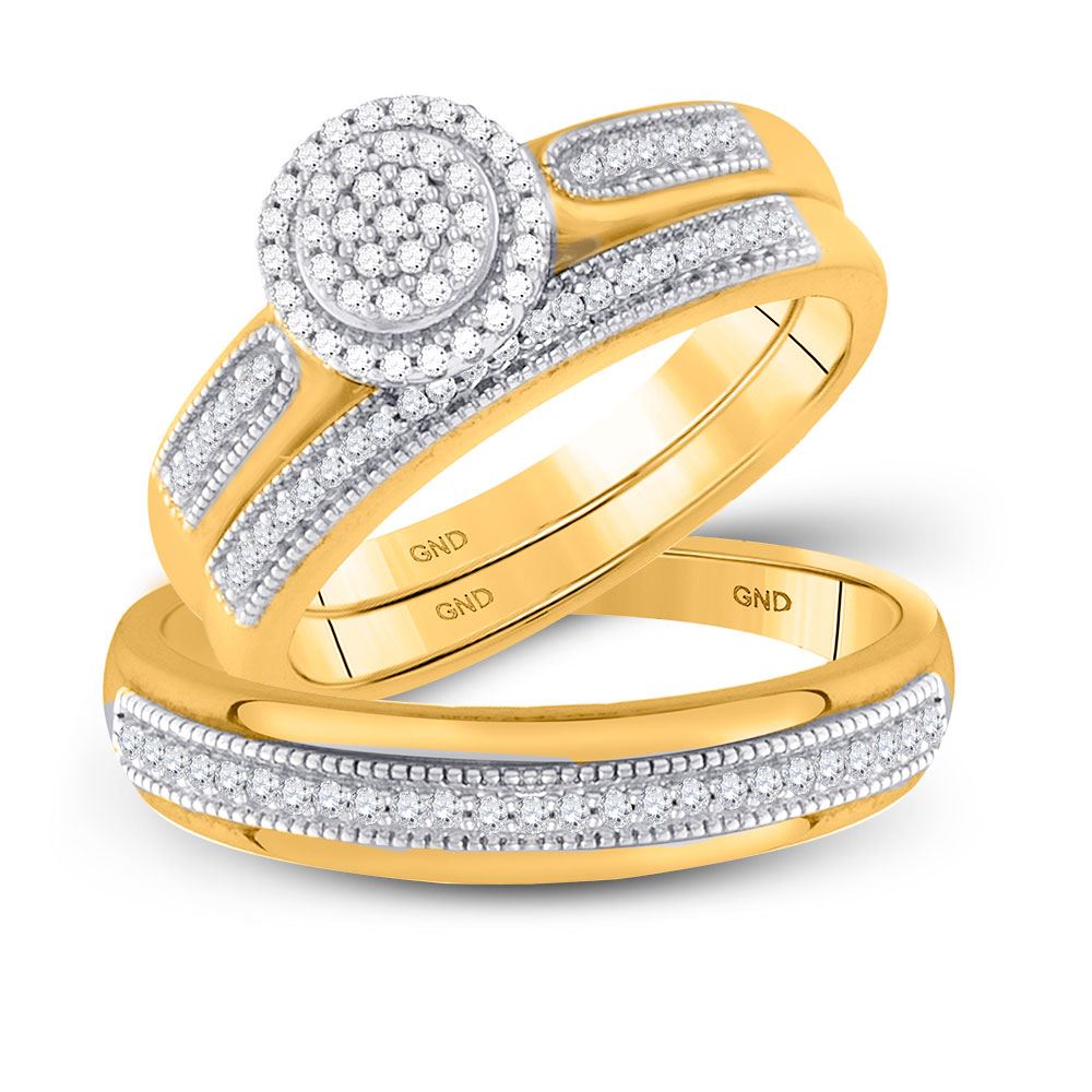 REF-48V2A - SKU: GD117733 ---- His & Hers Diamond Cluster Matching Bridal Wedding Ring Band Set 1/4 Cttw 10kt Yellow Gold