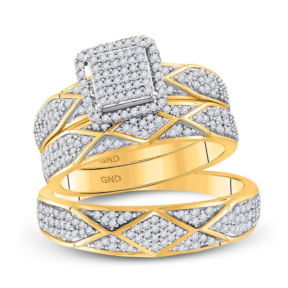 REF-64Y5X - SKU: GD114214 ---- His & Hers Diamond Cluster Matching Bridal Wedding Ring Band Set 3/4 Cttw 10kt Yellow Gold