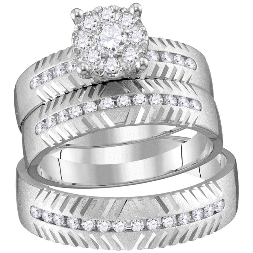 REF-119V1A - SKU: GD113862 ---- His & Hers Diamond Cluster Matching Bridal Wedding Ring Band Set 3/4 Cttw 14kt Yellow Gold