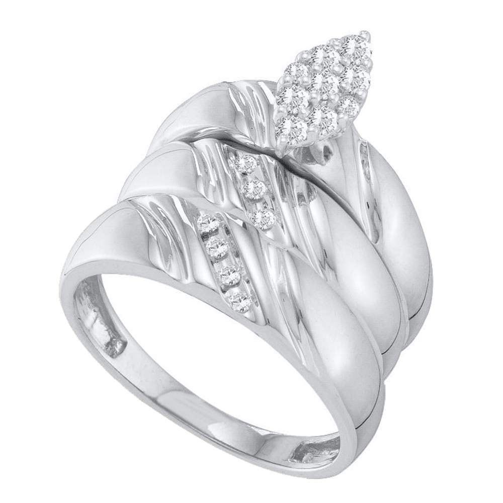 REF-34M5X - SKU: GD56628 ---- His & Hers Diamond Cluster Matching Bridal Wedding Ring Band Set 3/8 Cttw 10kt White Gold