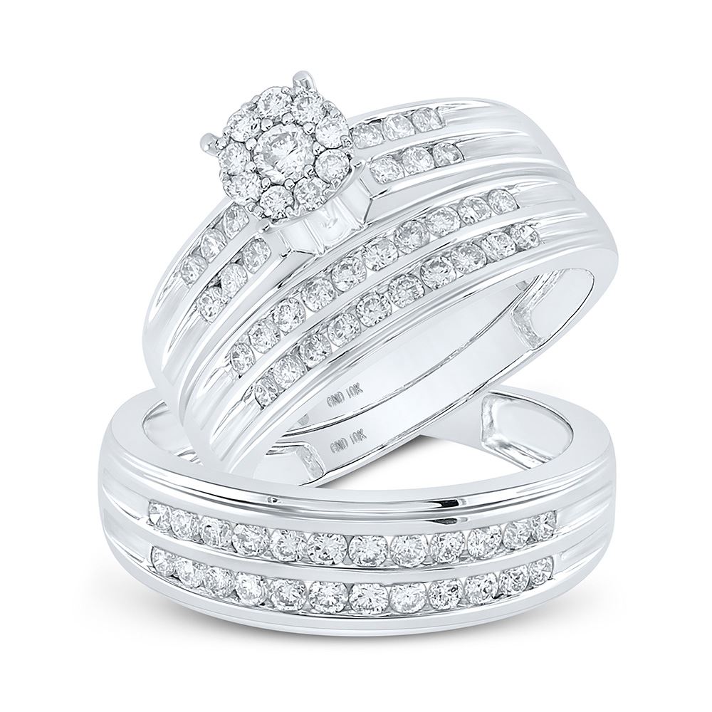 10kt White Gold His Hers Round Diamond Cluster Matching Wedding Set 1-1/5 Cttw