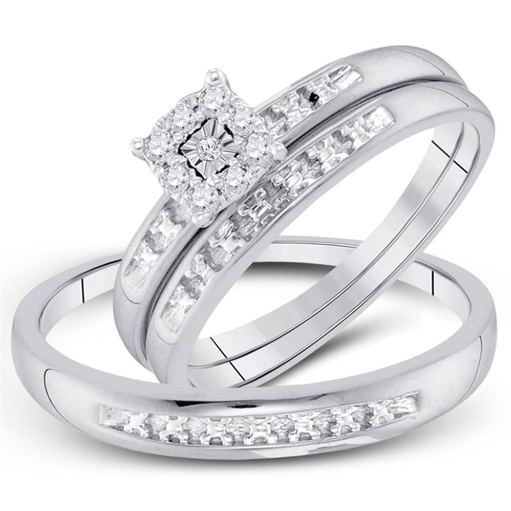 10kt White Gold His Hers Round Diamond Cluster Matching Wedding Set 1/10 Cttw