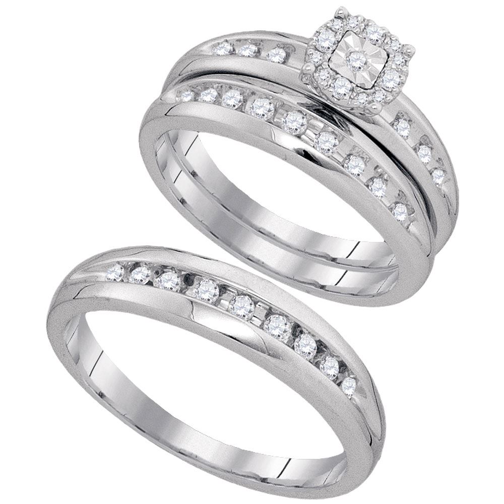 10kt White Gold His Hers Round Diamond Cluster Matching Wedding Set 1/2 Cttw