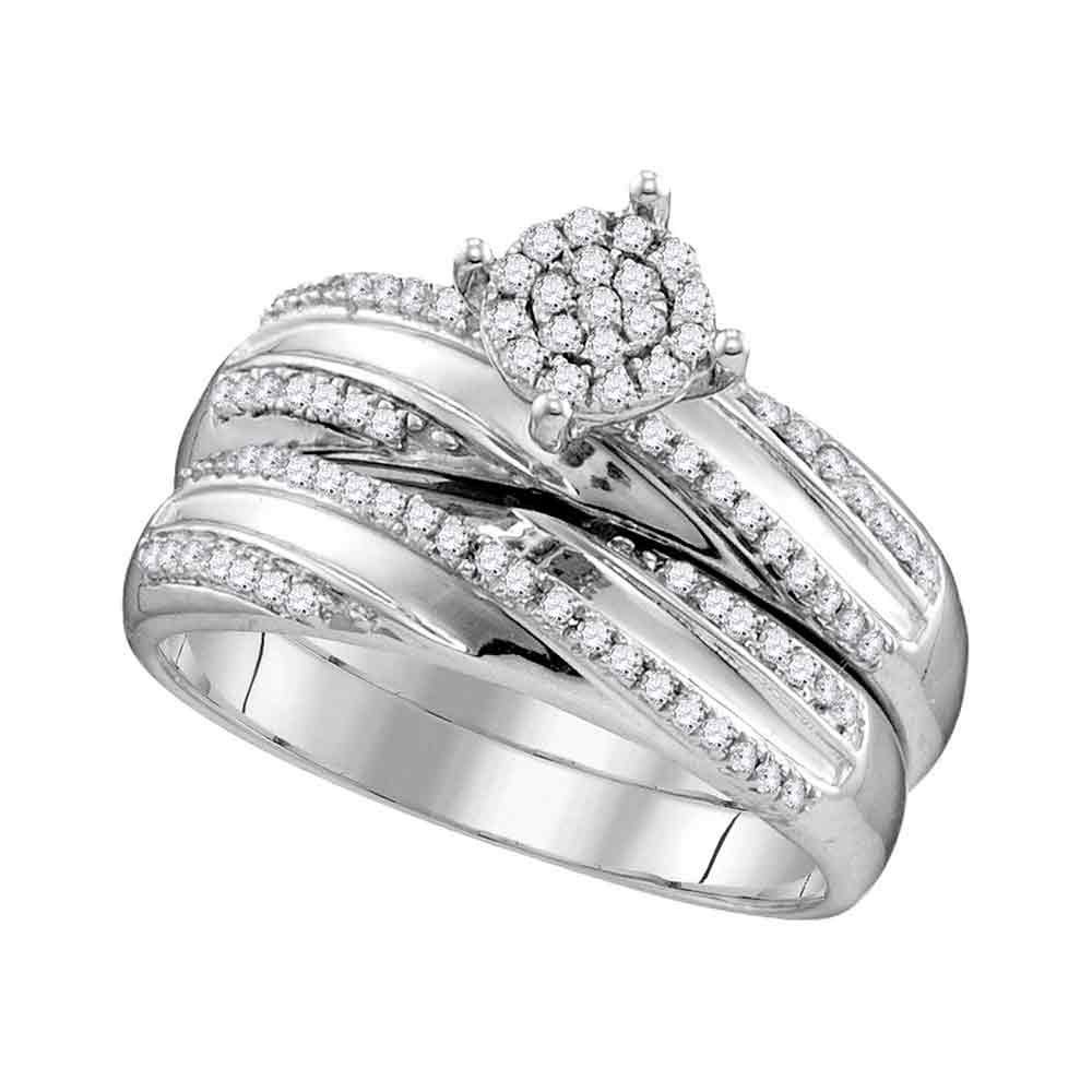 10kt White Gold His Hers Round Diamond Cluster Matching Wedding Set 1/2 Cttw