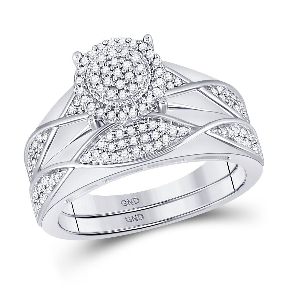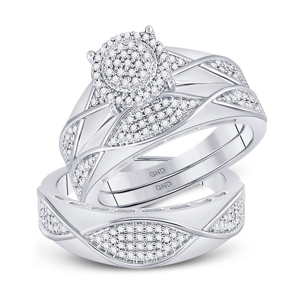 10kt White Gold His Hers Round Diamond Cluster Matching Wedding Set 1/2 Cttw