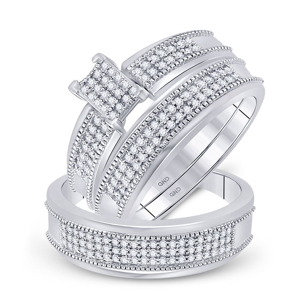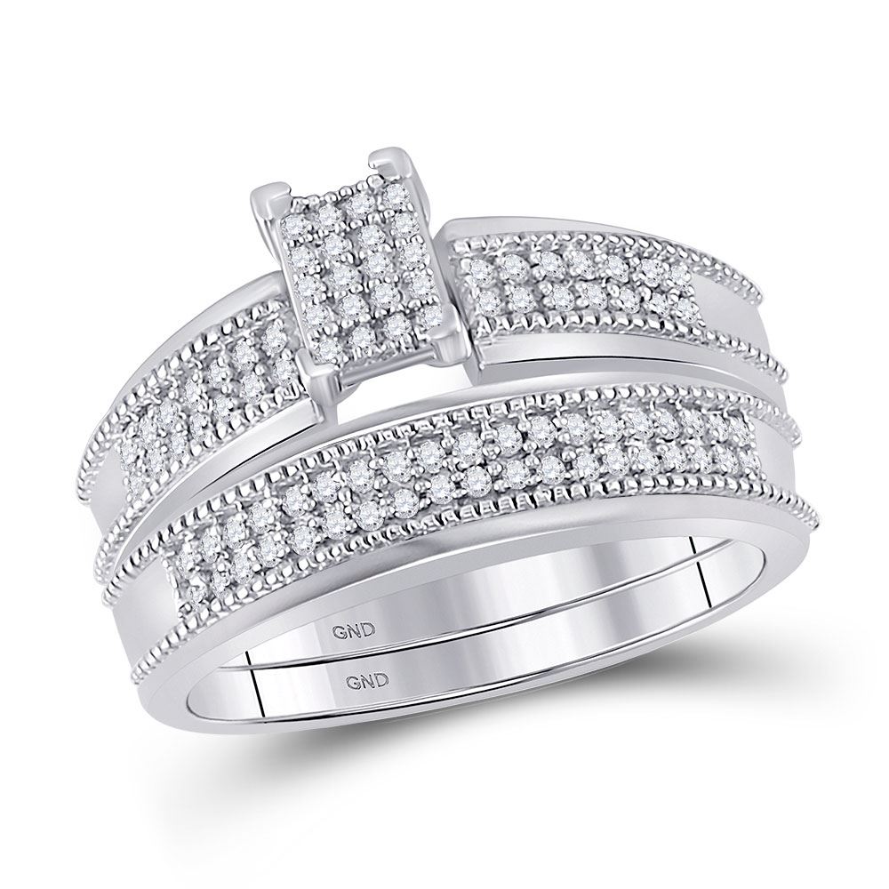 10kt White Gold His Hers Round Diamond Cluster Matching Wedding Set 1/2 Cttw