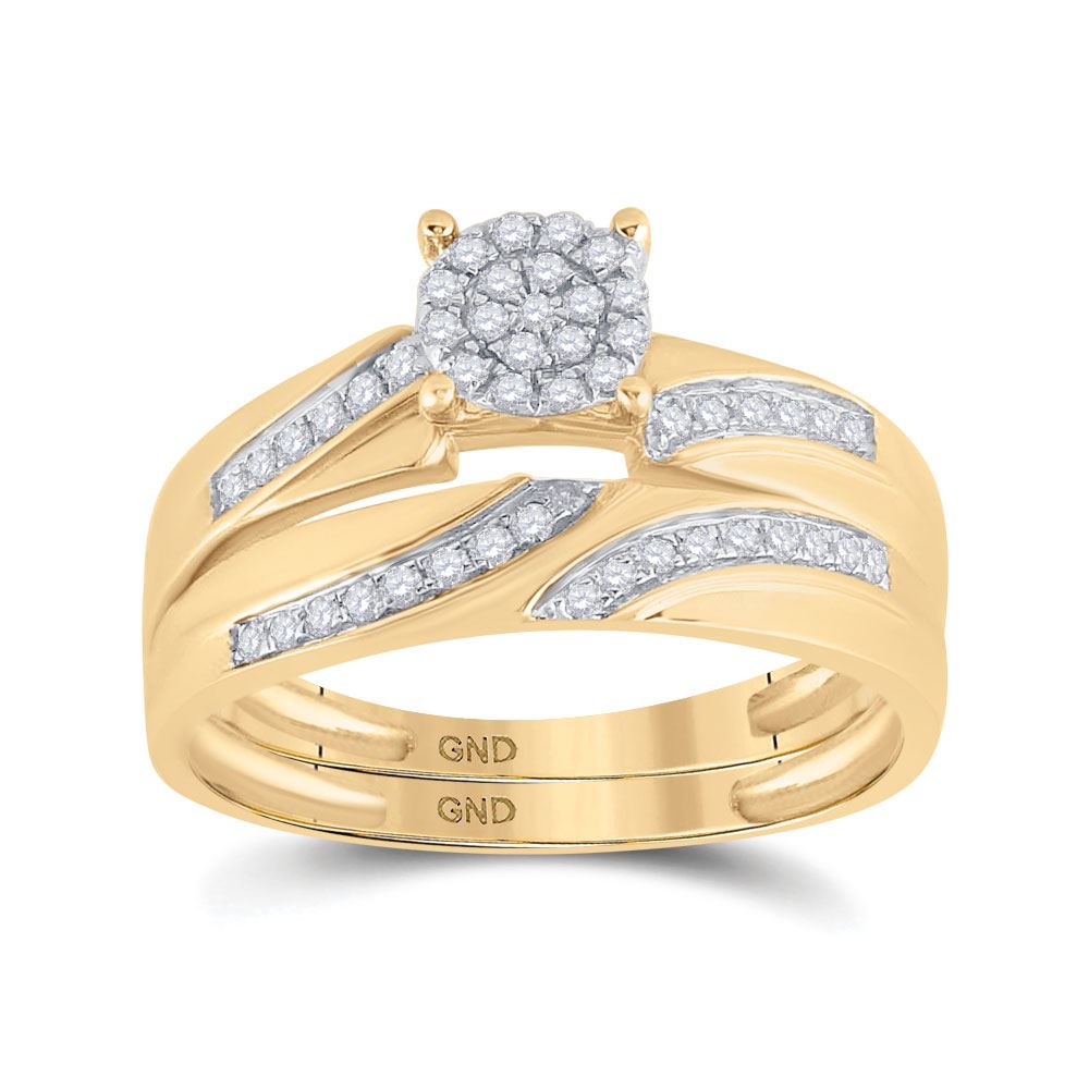 10kt Yellow Gold His Hers Round Diamond Cluster Matching Wedding Set 1/2 Cttw