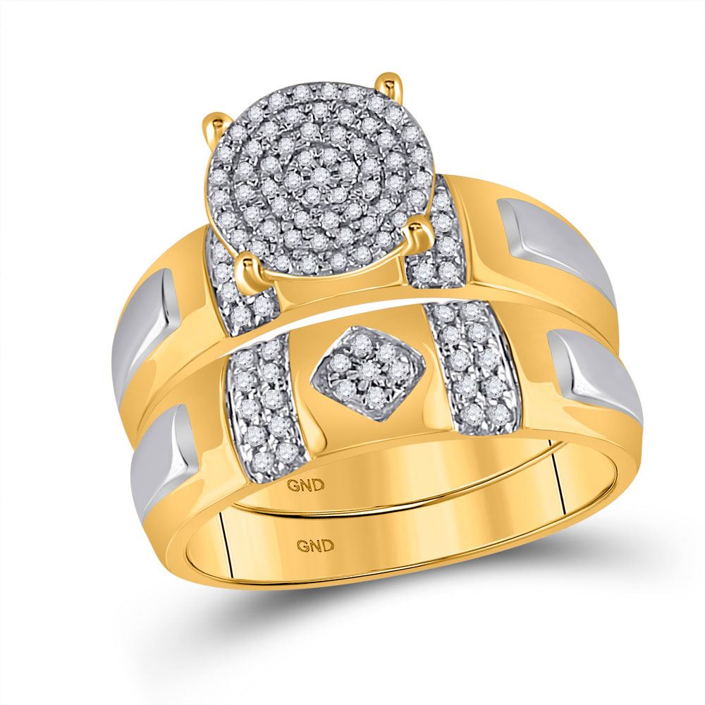 10kt Yellow Gold His Hers Round Diamond Cluster Matching Wedding Set 1/2 Cttw