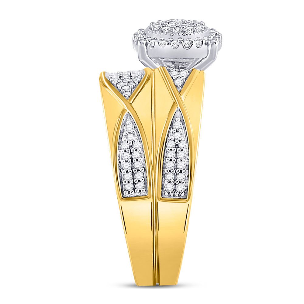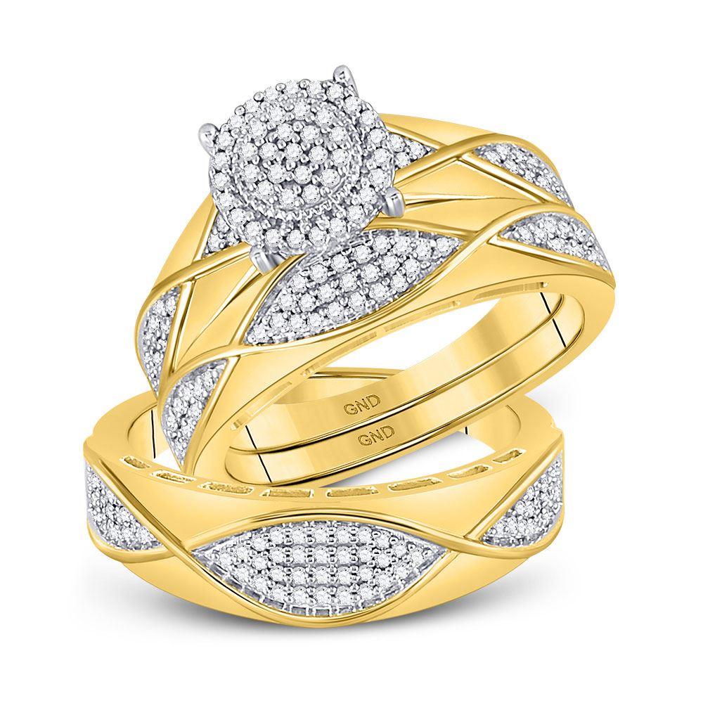 10kt Yellow Gold His Hers Round Diamond Cluster Matching Wedding Set 1/2 Cttw