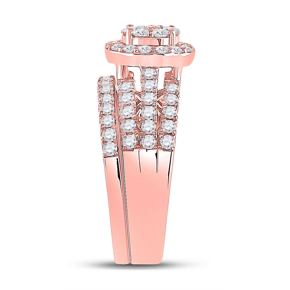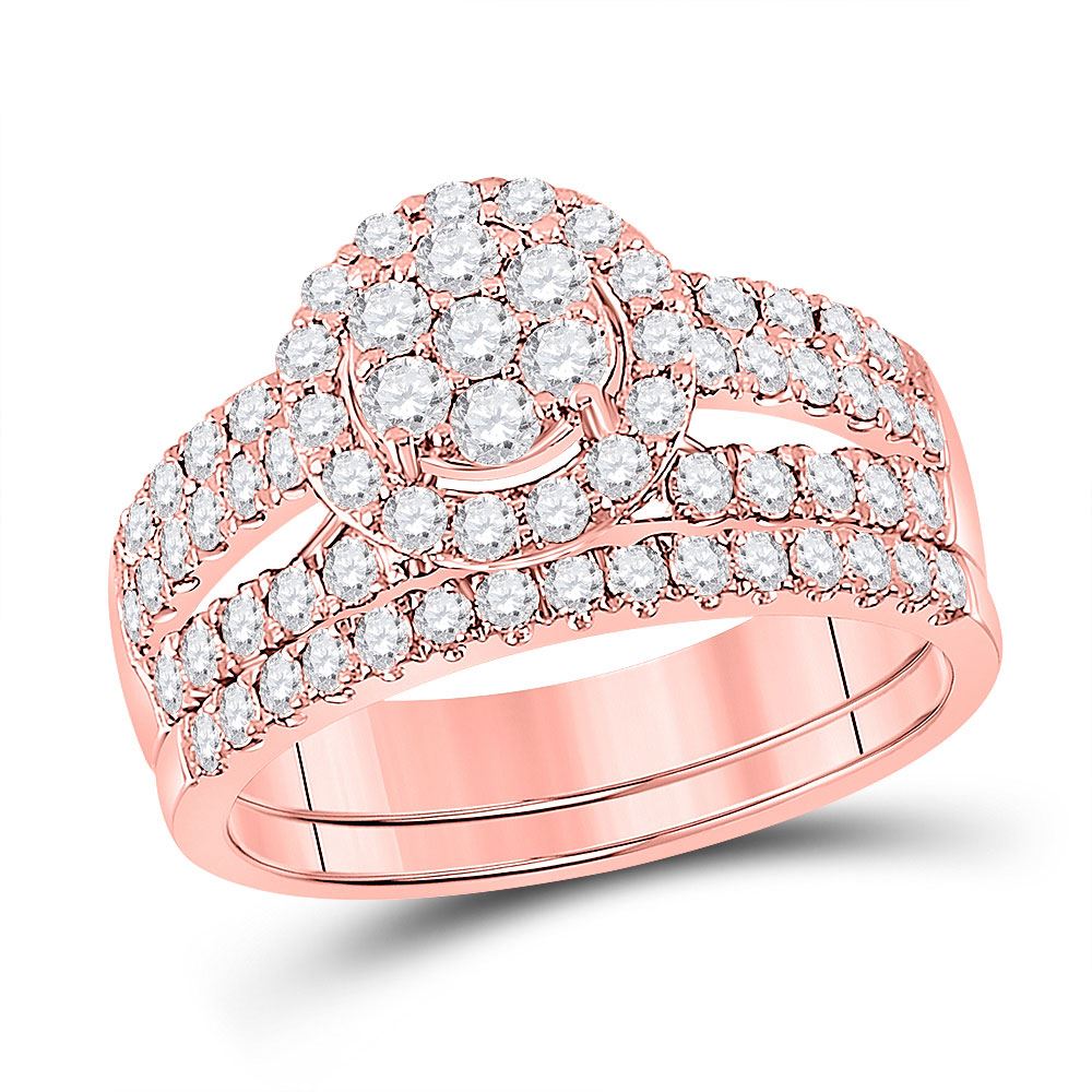 14kt Rose Gold His Hers Round Diamond Cluster Matching Wedding Set 1-3/4 Cttw