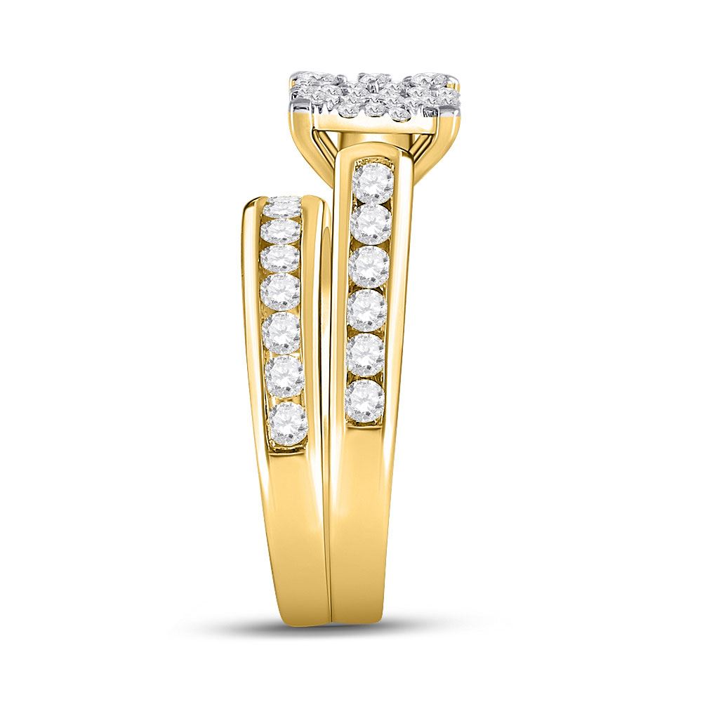 14kt Yellow Gold His Hers Round Diamond Cluster Matching Wedding Set 1-3/4 Cttw