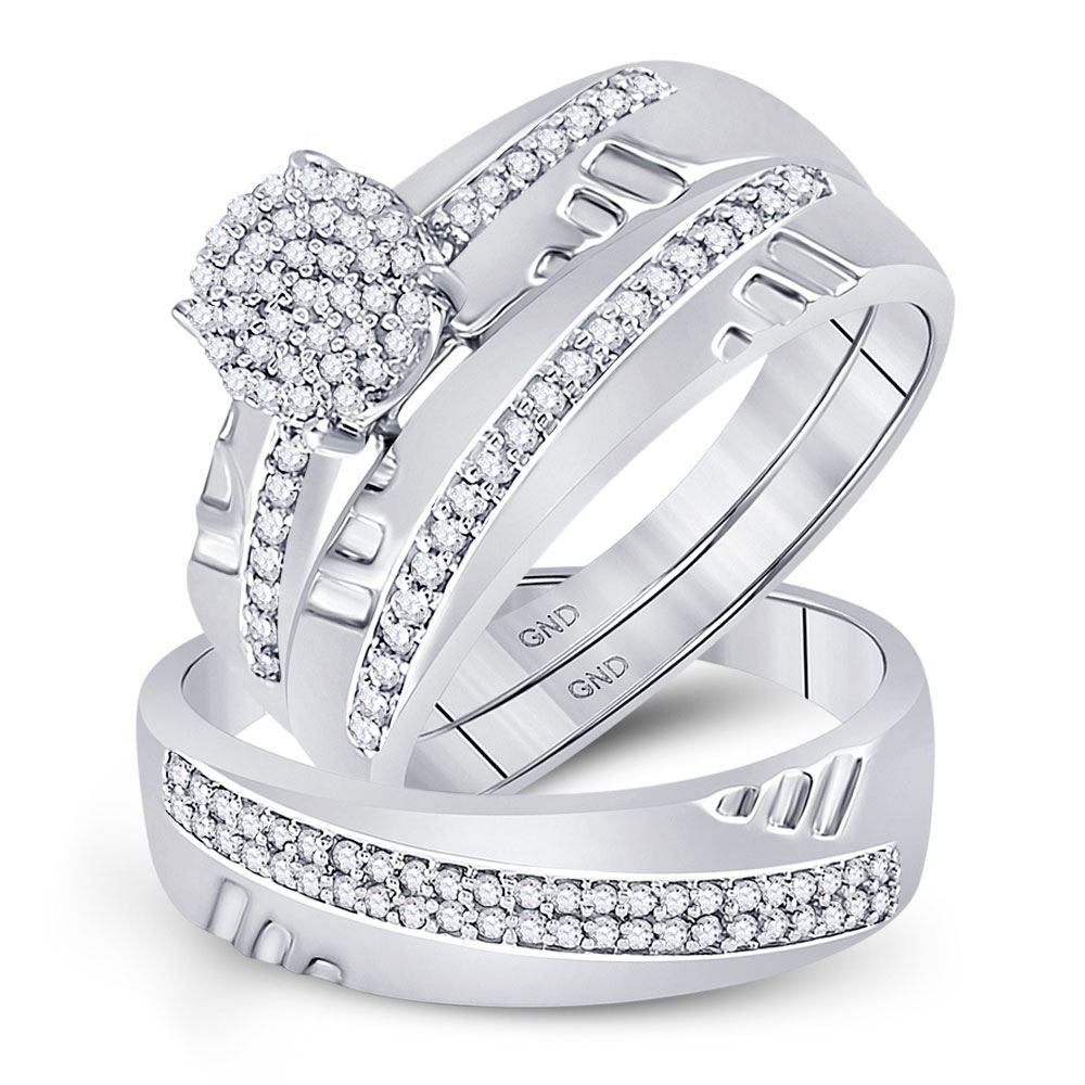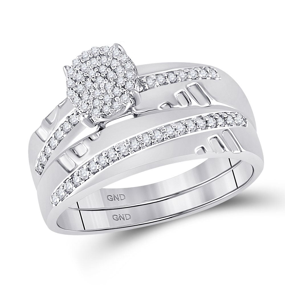 10kt White Gold His Hers Round Diamond Cluster Matching Wedding Set 1/3 Cttw