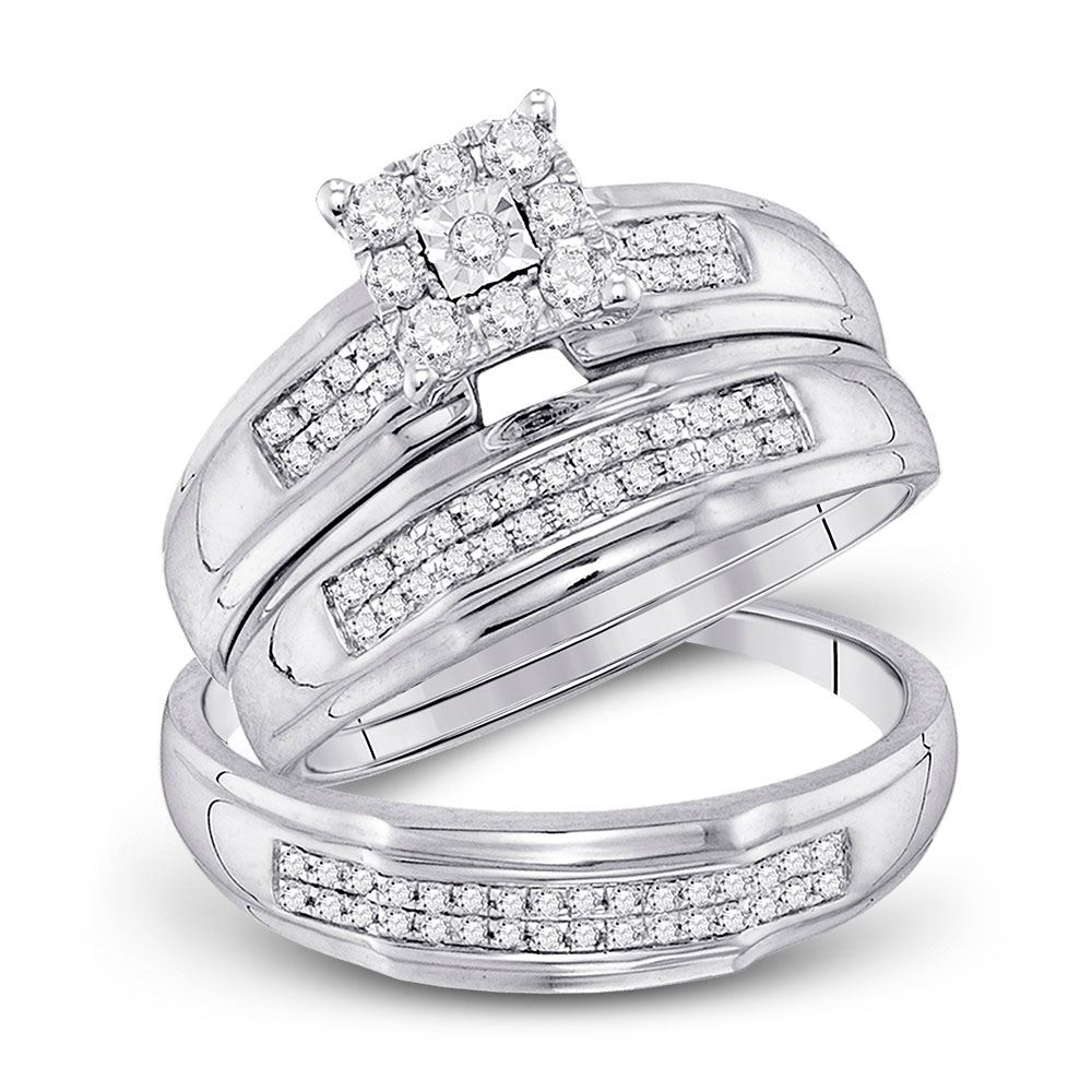 10kt White Gold His Hers Round Diamond Cluster Matching Wedding Set 1/3 Cttw