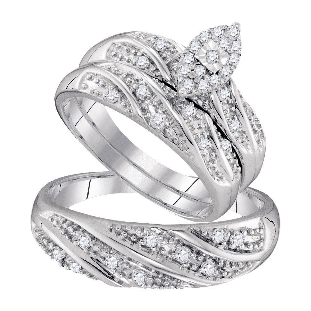 10kt White Gold His Hers Round Diamond Cluster Matching Wedding Set 1/3 Cttw