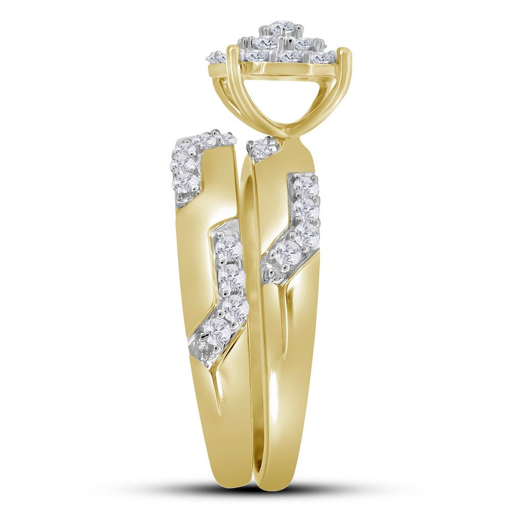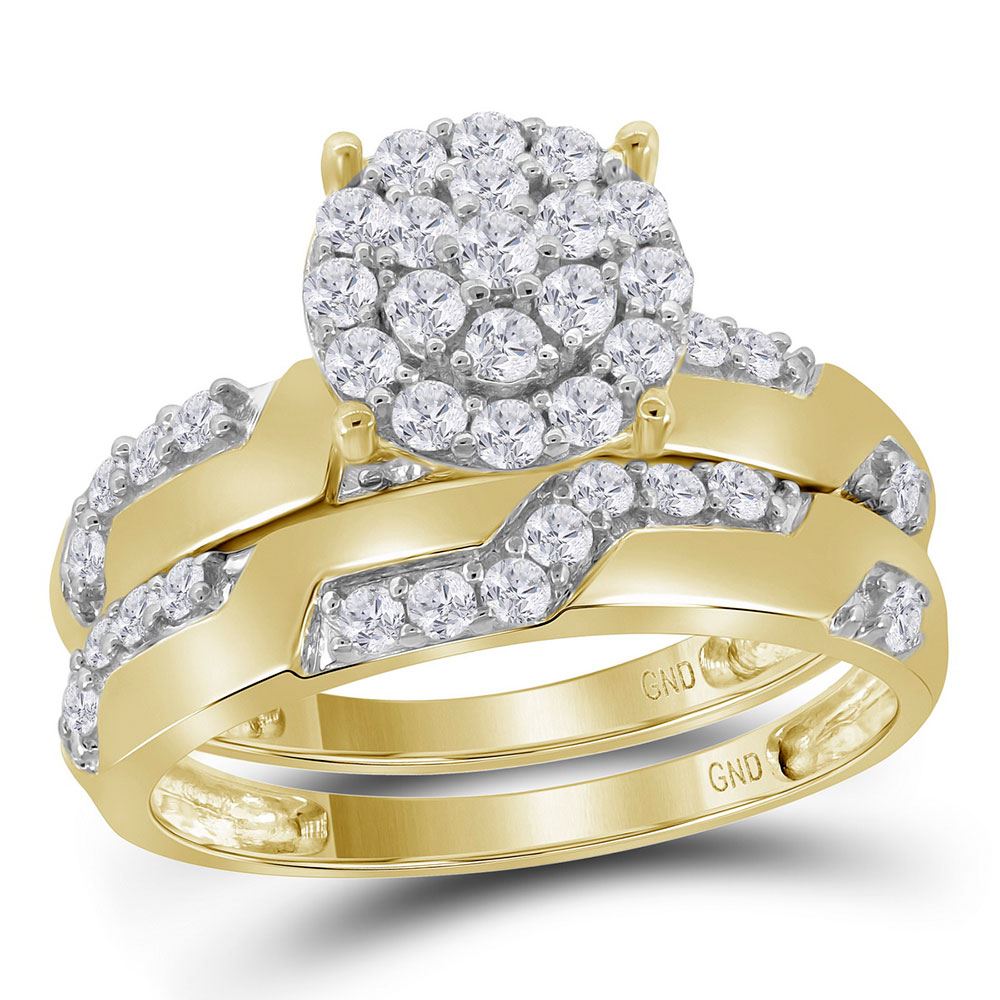 10kt Yellow Gold His Hers Round Diamond Cluster Matching Wedding Set 1 Cttw