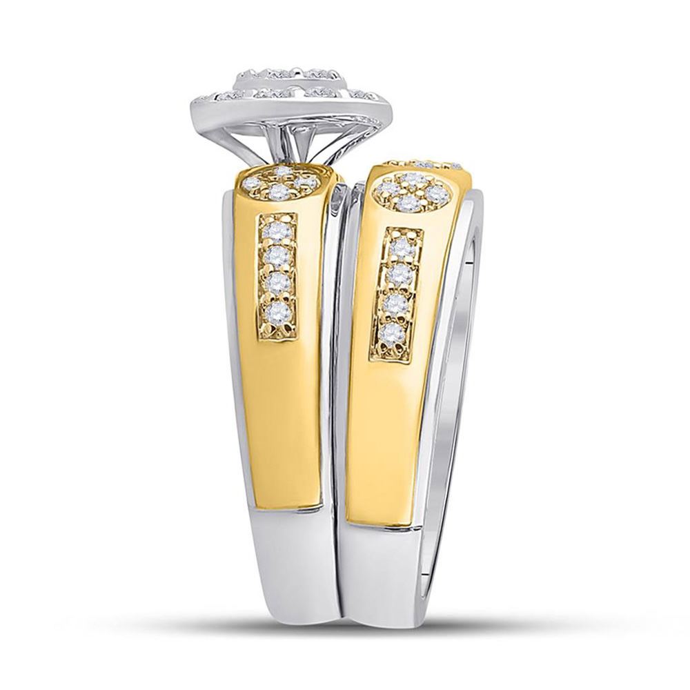 14kt Two-tone Gold His Hers Round Diamond Cluster Matching Wedding Set 1 Cttw