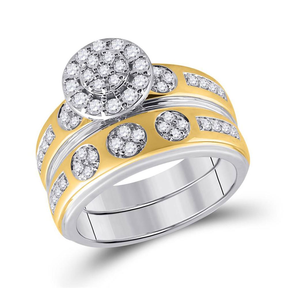 14kt Two-tone Gold His Hers Round Diamond Cluster Matching Wedding Set 1 Cttw