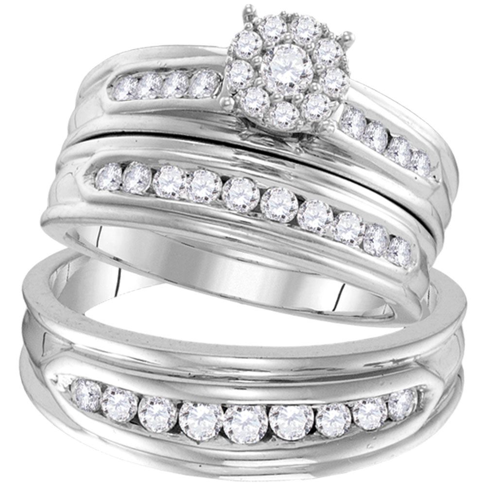 14kt White Gold His Hers Round Diamond Cluster Matching Wedding Set 1 Cttw