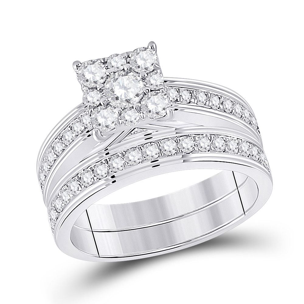 14kt White Gold His Hers Round Diamond Cluster Matching Wedding Set 2-1/5 Cttw