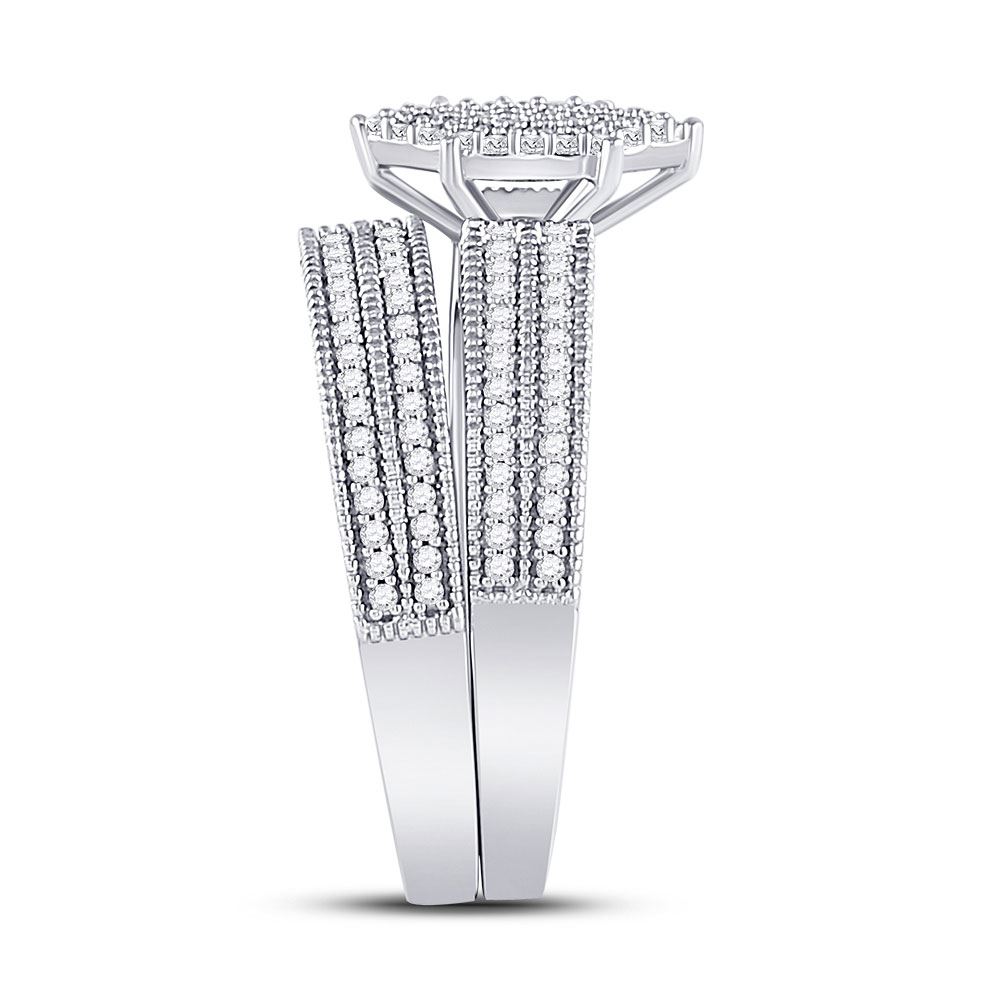 10kt White Gold His Hers Round Diamond Cluster Matching Wedding Set 3/4 Cttw