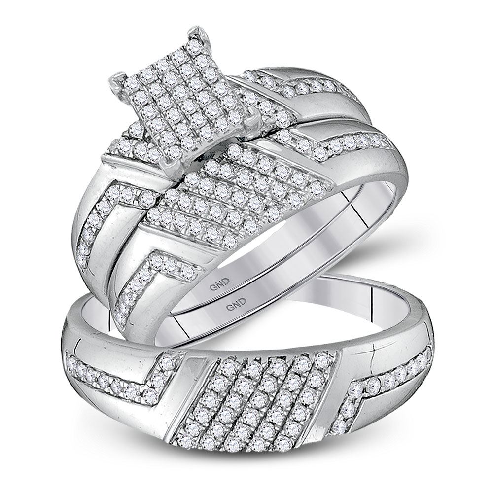 10kt White Gold His Hers Round Diamond Cluster Matching Wedding Set 3/4 Cttw