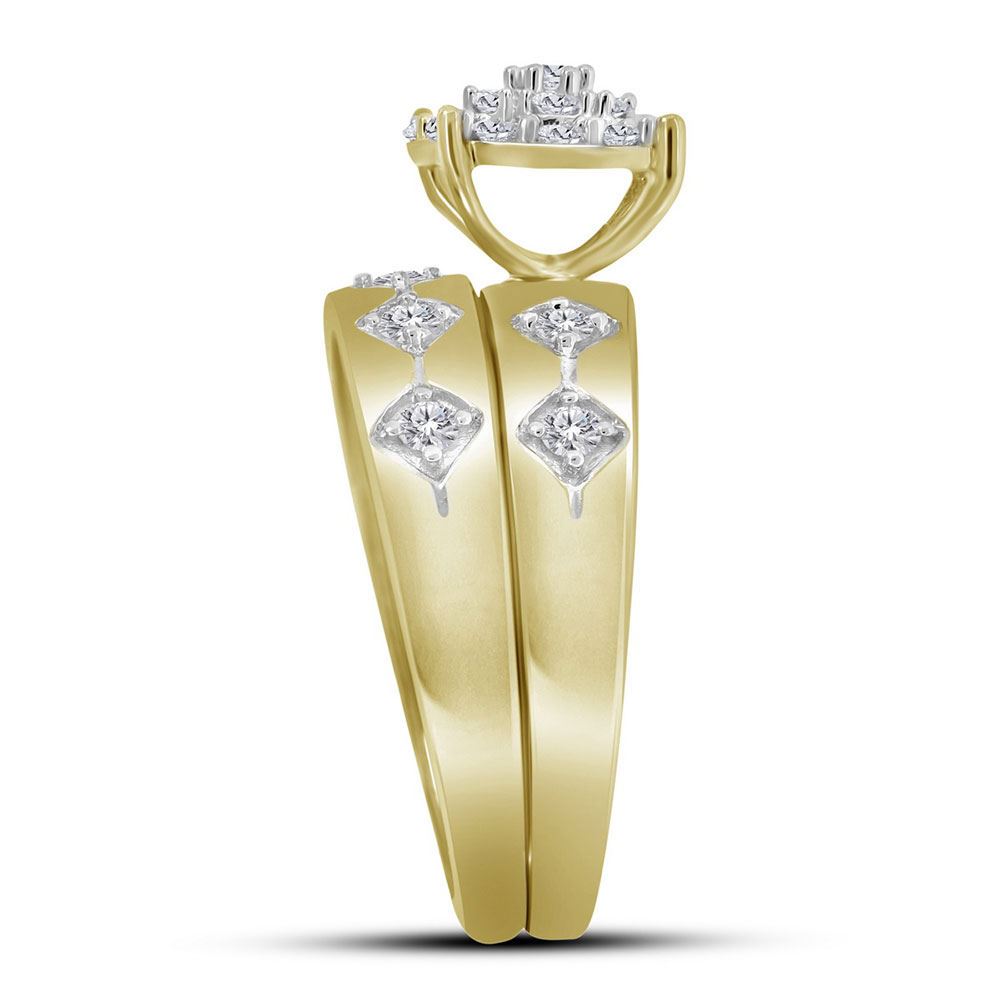 10kt Yellow Gold His Hers Round Diamond Cluster Matching Wedding Set 3/4 Cttw