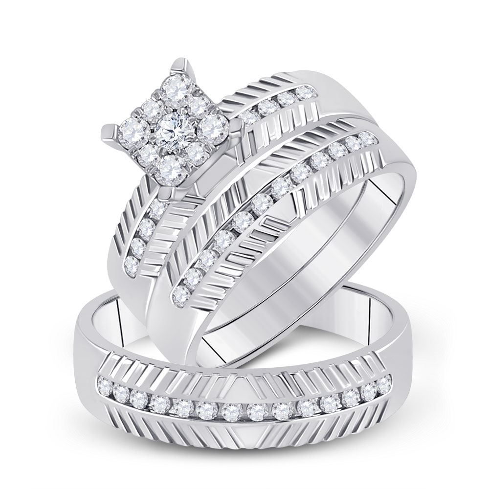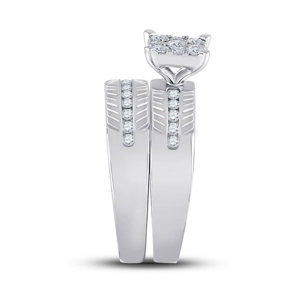 14kt White Gold His Hers Round Diamond Cluster Matching Wedding Set 3/4 Cttw