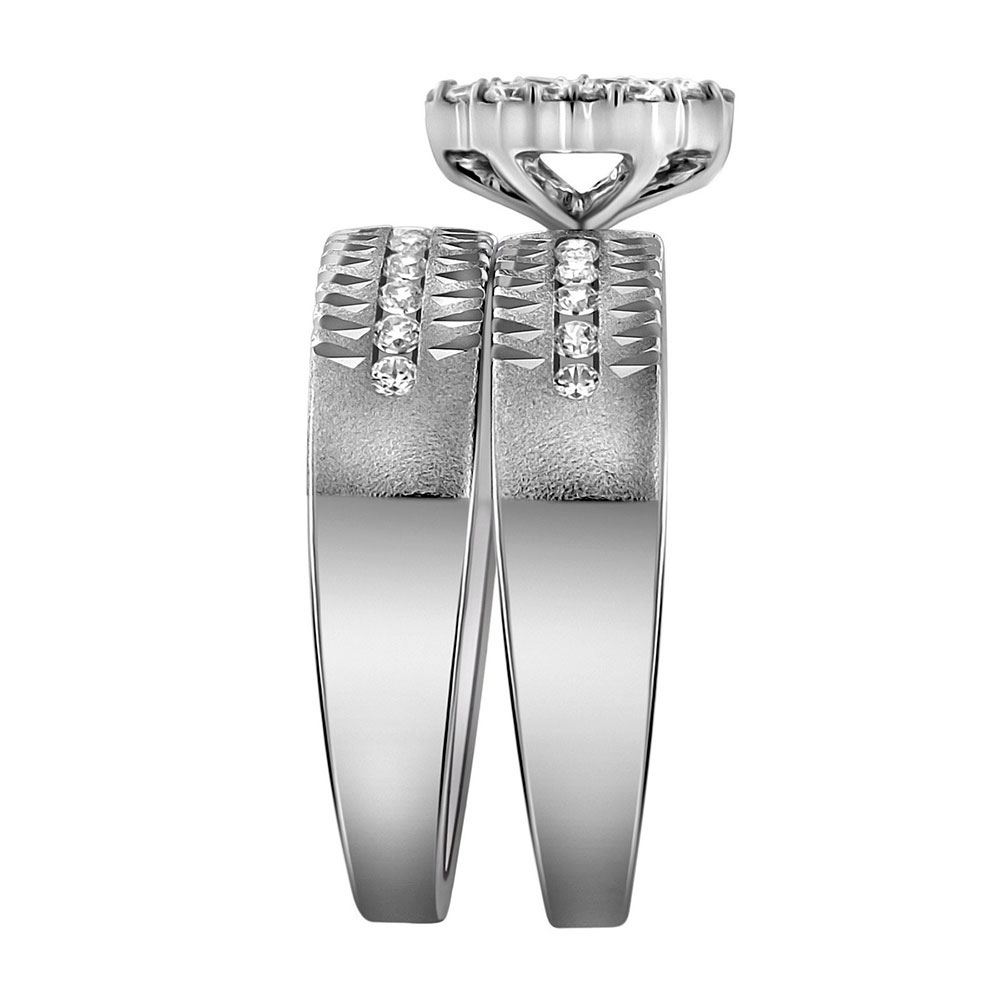 14kt White Gold His Hers Round Diamond Cluster Matching Wedding Set 3/4 Cttw