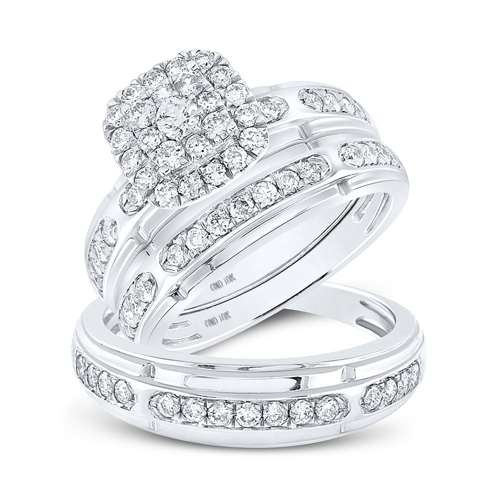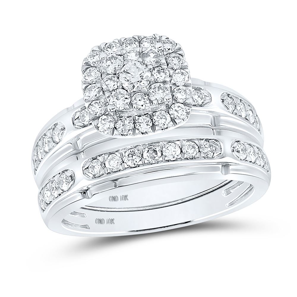 10kt White Gold His Hers Round Diamond Halo Matching Wedding Set 1-1/5 Cttw