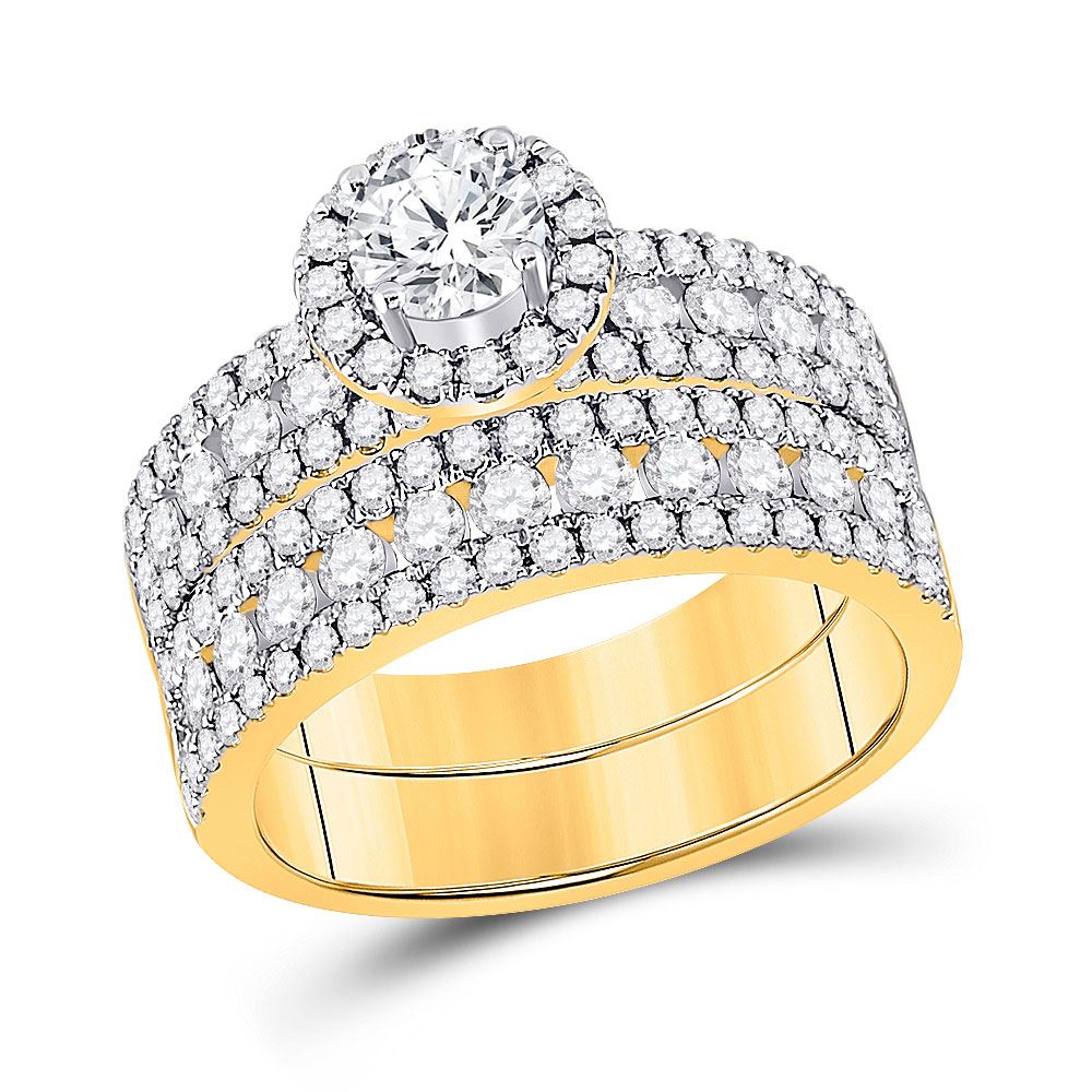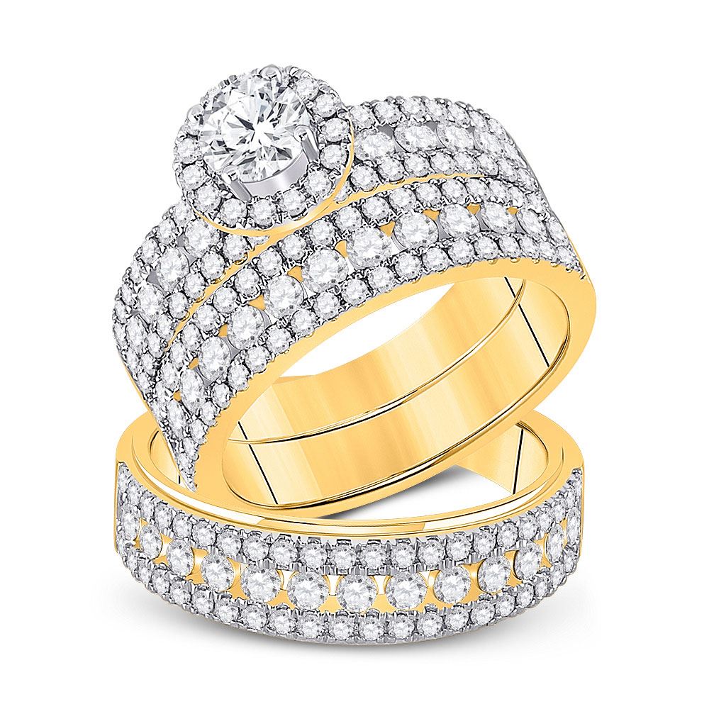 14kt Yellow Gold His Hers Round Diamond Halo Matching Wedding Set 3 Cttw
