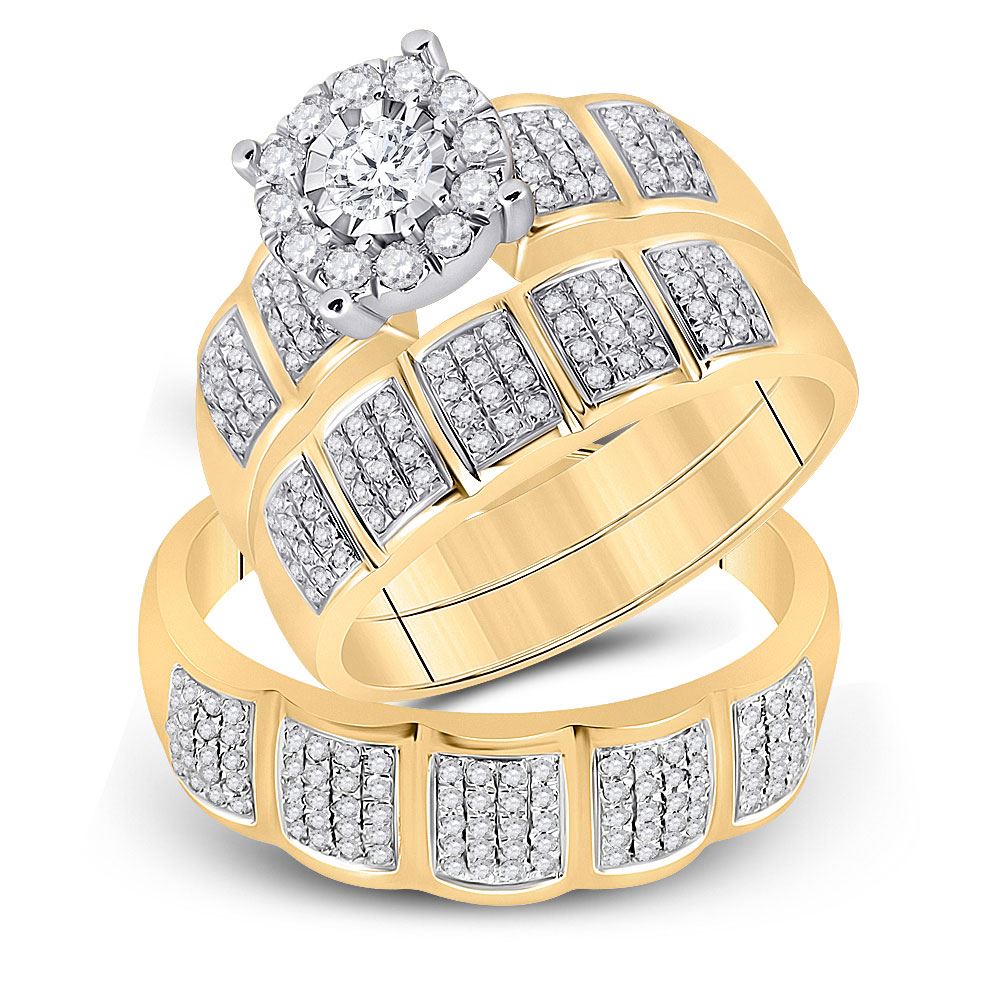 10kt Yellow Gold His Hers Round Diamond Halo Matching Wedding Set 7/8 Cttw