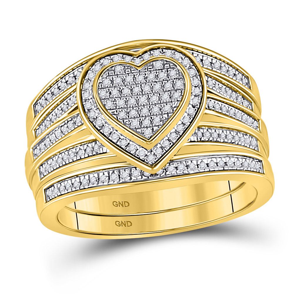 10kt Yellow Gold His Hers Round Diamond Heart Matching Wedding Set 1/2 Cttw