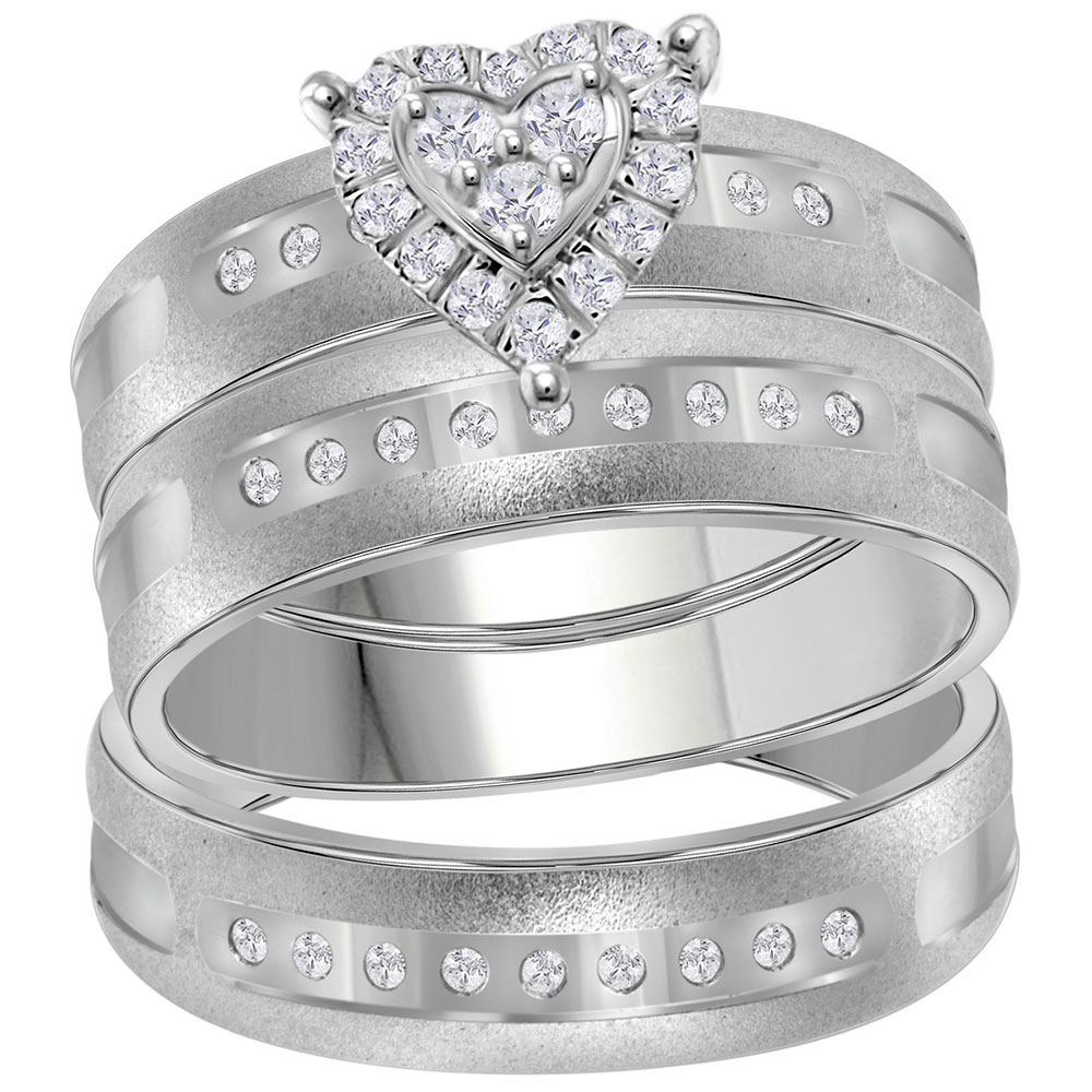 14kt White Gold His Hers Round Diamond Heart Matching Wedding Set 1/4 Cttw