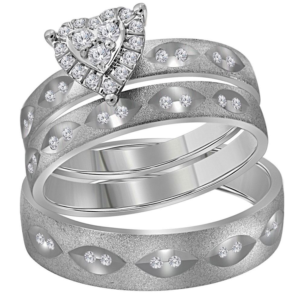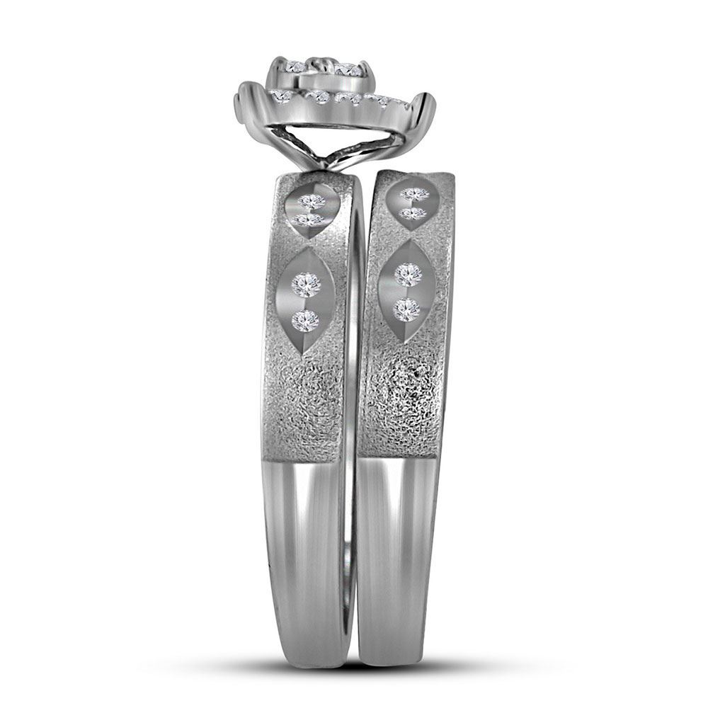 14kt White Gold His Hers Round Diamond Heart Matching Wedding Set 1/4 Cttw