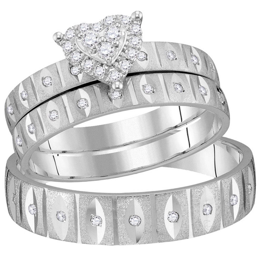 14kt White Gold His Hers Round Diamond Heart Matching Wedding Set 1/4 Cttw