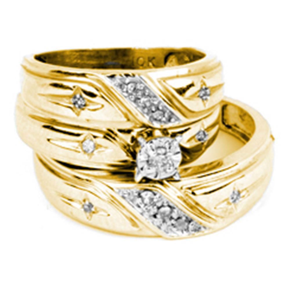 REF-44A5V - SKU: GD17574 ---- His & Hers Diamond Solitaire Cross Matching Bridal Wedding Ring Band Set 1/5 Cttw 10kt Yellow Gold