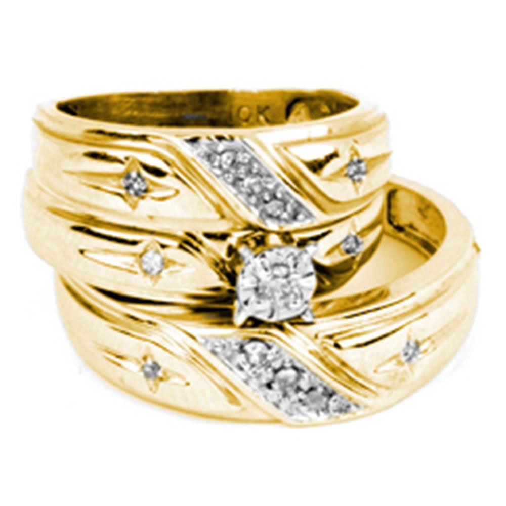 REF-53N6F - SKU: GD20782 ---- His & Hers Diamond Solitaire Cross Matching Bridal Wedding Ring Band Set 1/5 Cttw 14kt Yellow Gold
