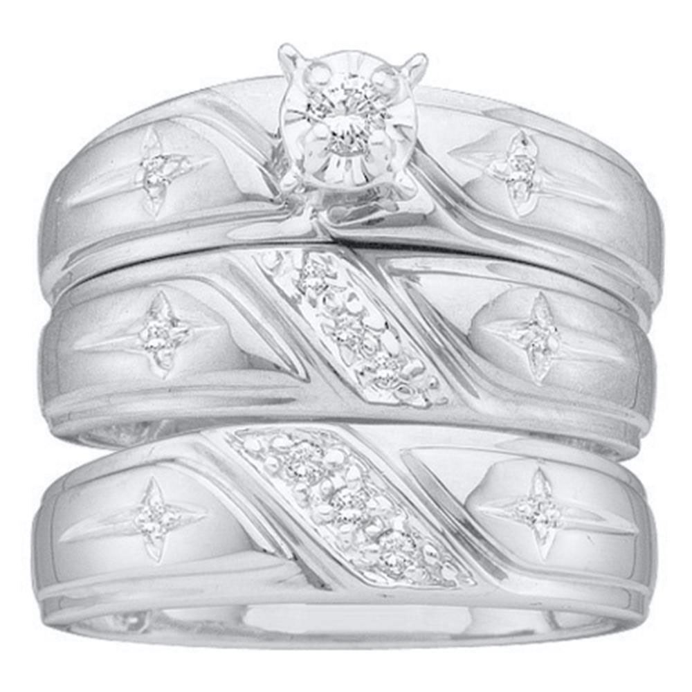 REF-44W5H - SKU: GD20781 ---- His & Hers Diamond Solitaire Cross Matching Bridal Wedding Ring Band Set 1/6 Cttw 10kt White Gold
