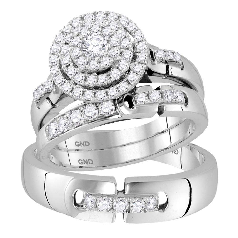 REF-150F0N - SKU: GD119406 ---- His Hers Diamond Solitaire Matching Bridal Wedding Ring Band Set 1.00 Cttw 14kt White Gold
