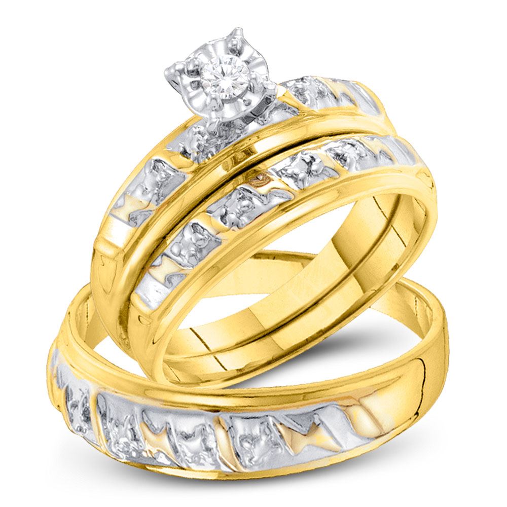 REF-30M9X - SKU: GD15485 ---- His & Hers Diamond Solitaire Matching Bridal Wedding Ring Band Set 1/12 Cttw 10kt Yellow Gold