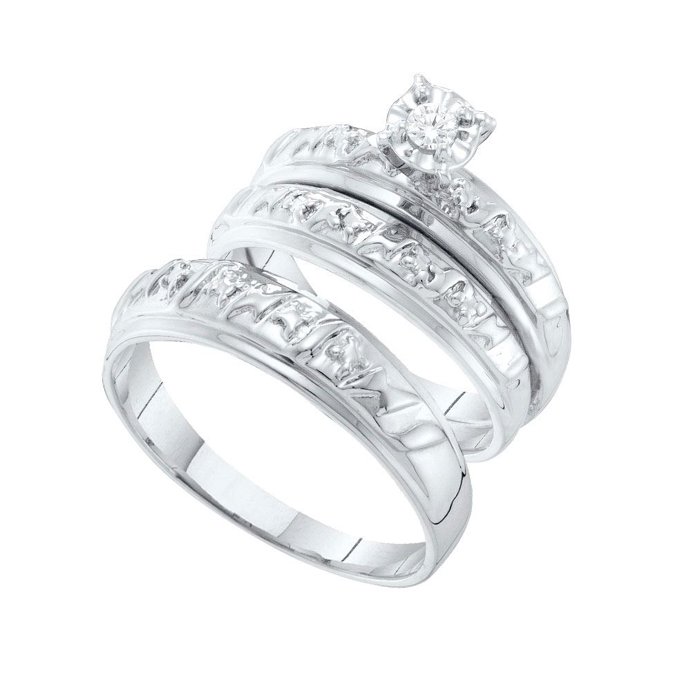 REF-44K5R - SKU: GD60737 ---- His & Hers Diamond Solitaire Matching Bridal Wedding Ring Band Set 1/12 Cttw 14kt White Gold