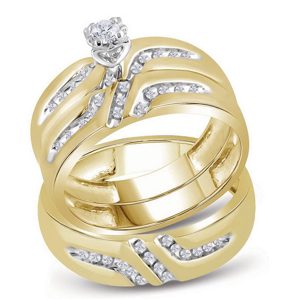 REF-40V9A - SKU: GD39013 ---- His & Hers Diamond Solitaire Matching Bridal Wedding Ring Band Set 1/4 Cttw 10kt Yellow Gold