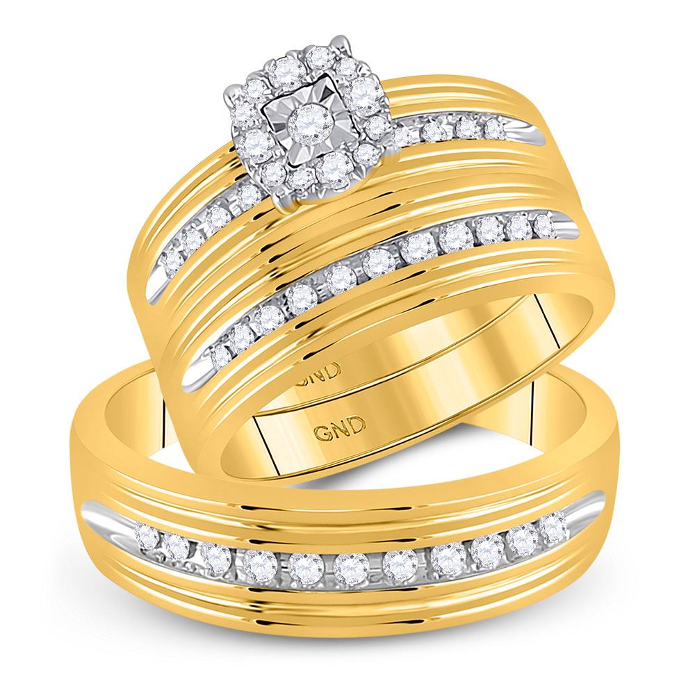 REF-55Y5X - SKU: GD93862 ---- His & Hers Diamond Solitaire Matching Bridal Wedding Ring Band Set 3/8 Cttw 10kt Yellow Gold
