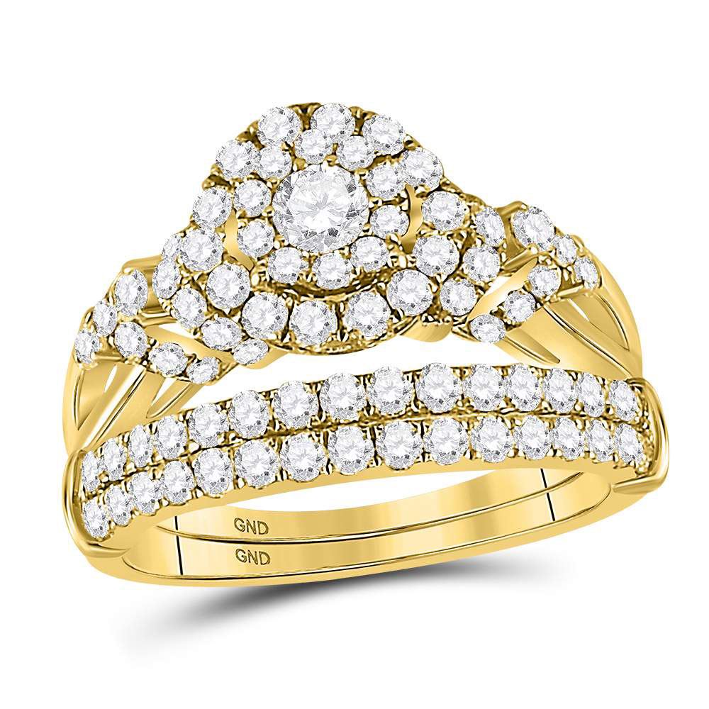 14kt Yellow Gold His Hers Round Diamond Solitaire Matching Wedding Set 1-1/2 Cttw