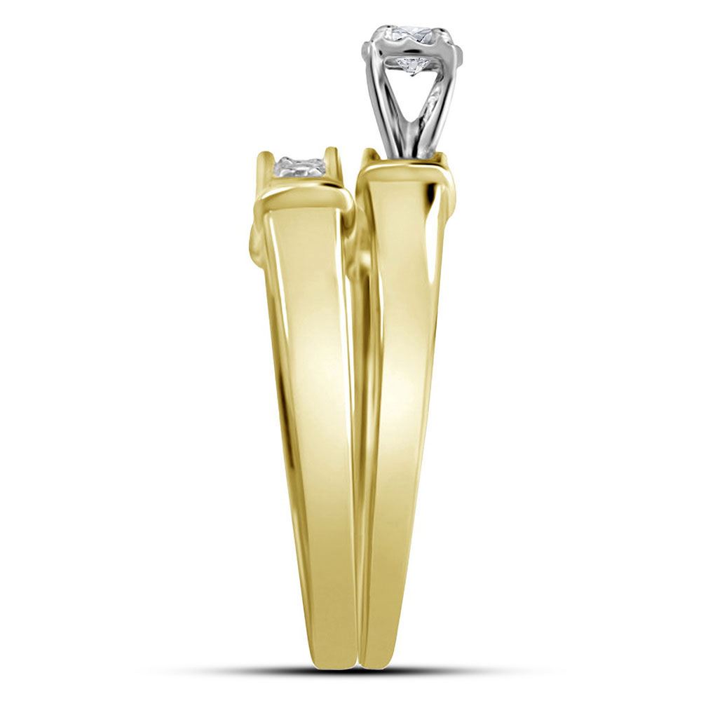 10kt Yellow Gold His Hers Round Diamond Solitaire Matching Wedding Set 1/10 Cttw