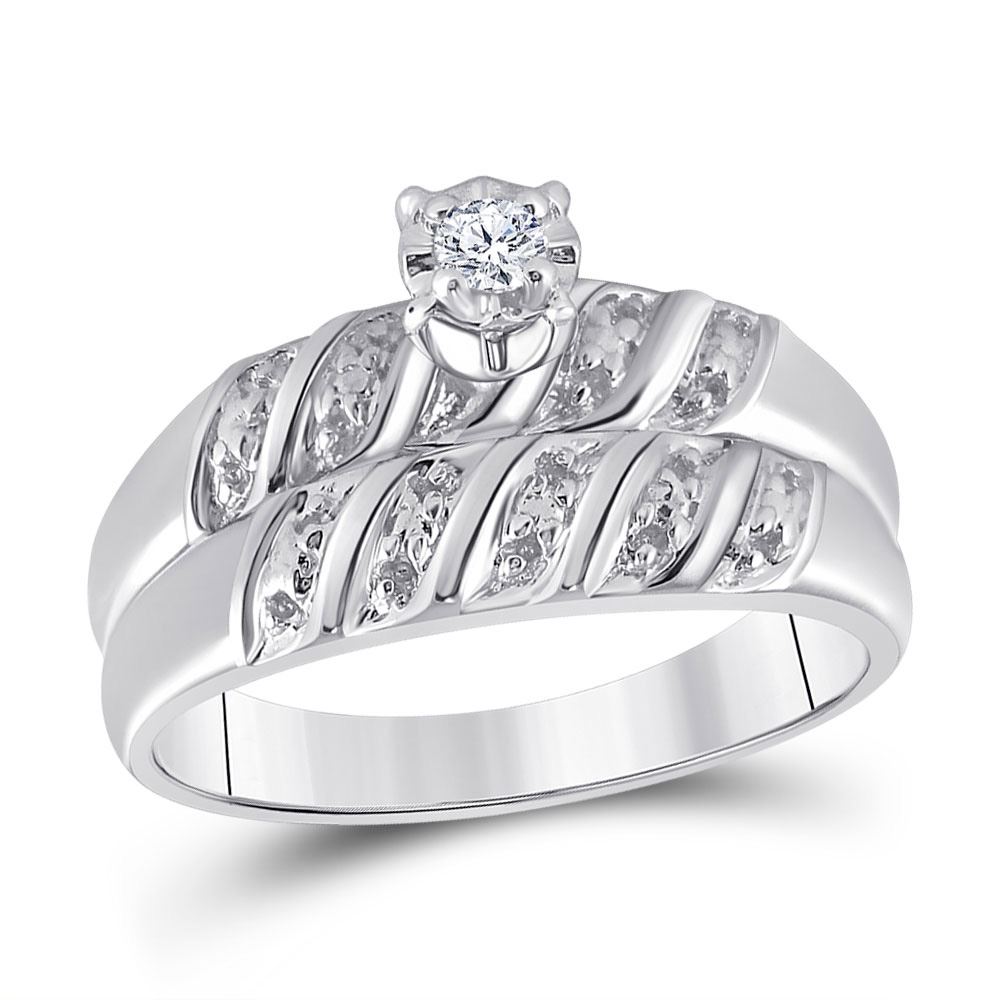 10kt White Gold His Hers Round Diamond Solitaire Matching Wedding Set 1/20 Cttw