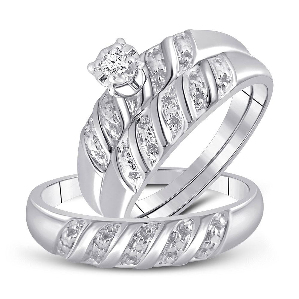 10kt White Gold His Hers Round Diamond Solitaire Matching Wedding Set 1/20 Cttw