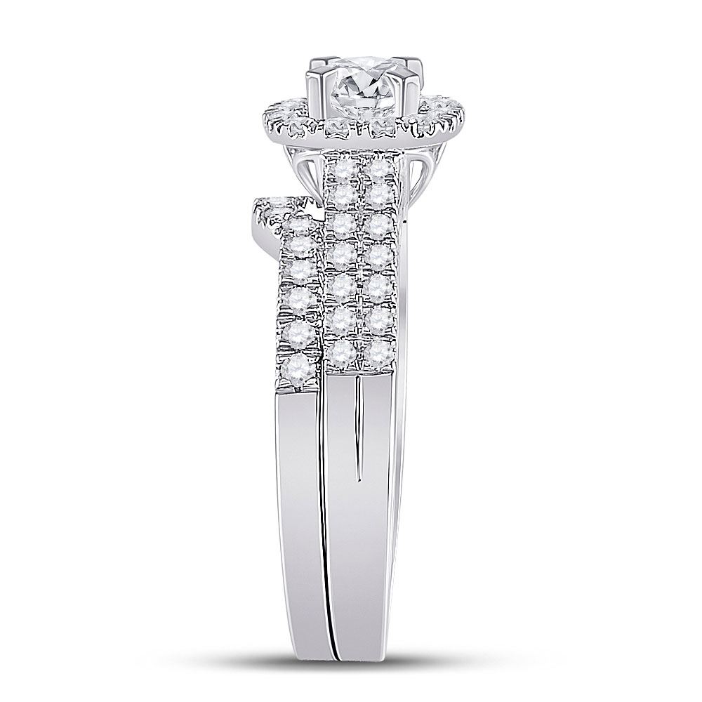 14kt White Gold His Hers Round Diamond Solitaire Matching Wedding Set 1-3/4 Cttw